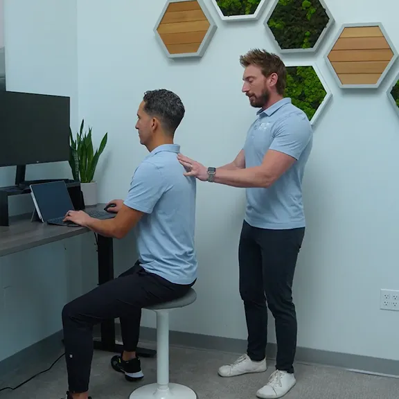 Learn what optimal desk posture looks like, introduction to proper breathing posture and technique, improve diaphragmatic (belly) breathing.