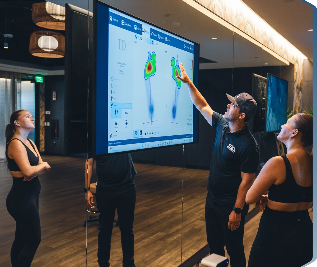 We learn the ins and outs of your body through dynamic gait analysis. You’ll walk and stand on a pressure plate that will gather data on what’s going on beneath your foot while you move.